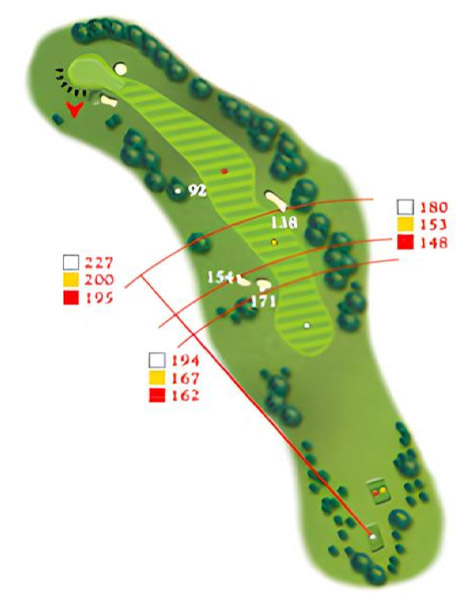 A good drive between the bunkers should leave a relatively short approach to a well bunkered green full of subtle borrows. However, any wayward tee shot is likely to be punished as there are few ‘alternative routes’ to the green. The name Three Threes refer to the fact that, before it was lengthened some 30 or so years ago, it was originally 333 yards long.