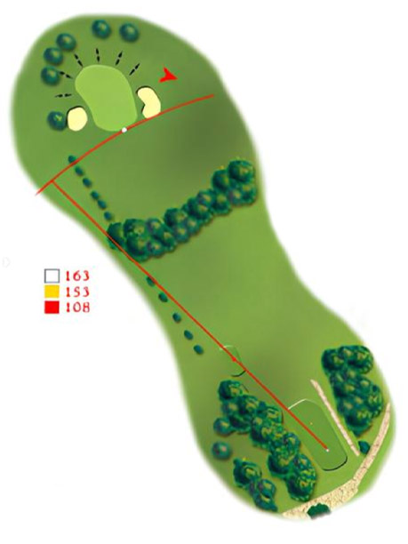 Another tee shot over Scots Pine to a green that’s always further beyond the trees than it appears from the tee. Hungry bunkers are positioned front of the green, left and right, and the edge of the green is banked beyond them. Firs is a reference to the splendid line of Scots Pine which cross this hole.