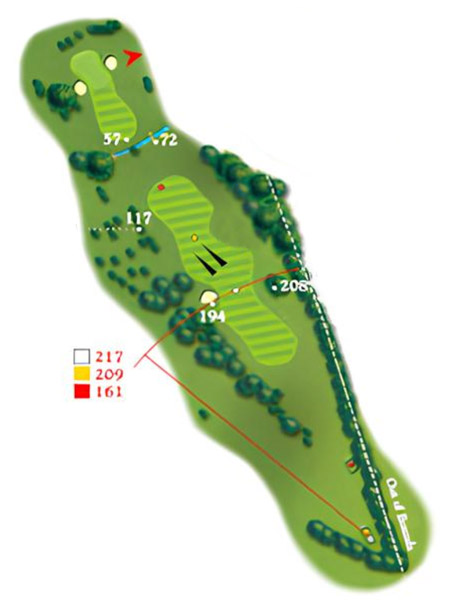 A tough par 4 with well placed fairway bunkers looking to gobble up any wayward drives. A second shot over the brook to an elevated green which slopes from back to front and is flanked by bunkers left and right. Brook is a reference to the brook which runs through this hole (as well as the 10th, 11th and 15th) although this is not actually evident from the tee.