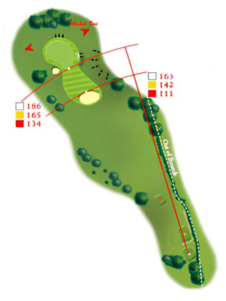 The longest par 3 on the course and probably the most challenging. Take plenty of club to make sure that you clear the large bunker in front of the green. A tee shot leaked either left or right is likely to find the trees. The hole is named as a memorial to one the club’s former greenkeepers, Jack Simons.